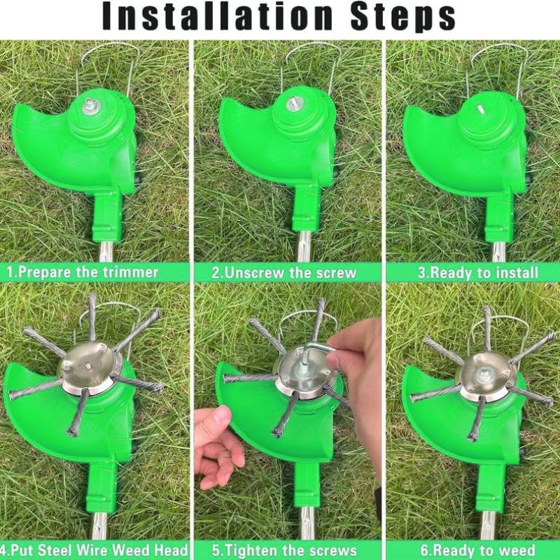 The steel wired trimmer blade head can be used to mow lawns, Especially remove weeds in corners or between bricks, clean moss on sidewalks, and remove weeds on sand and gravel. Can be used to remove rust, moss, clean floors, brush weeds for gardens, sidewalks, courtyards, parking lots, and so on.